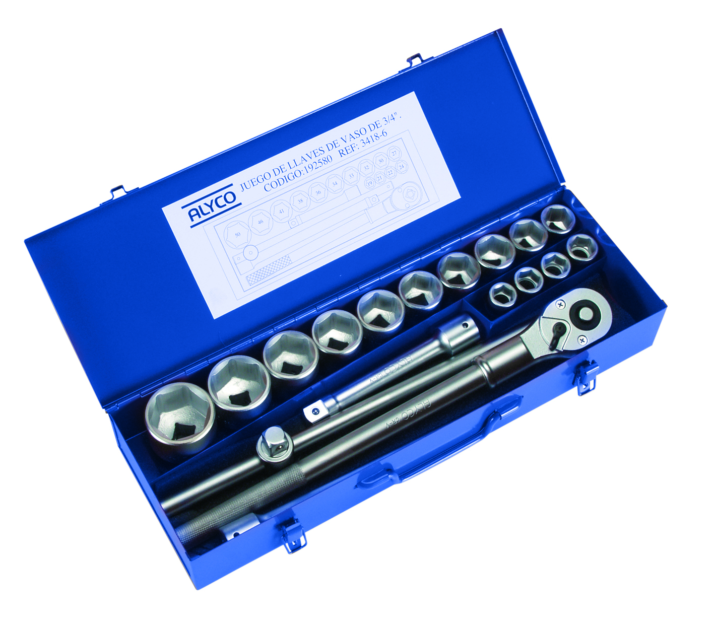 Set Of 3/4" Sockets And Accessories With 18 Pieces Metal Box ALYCO