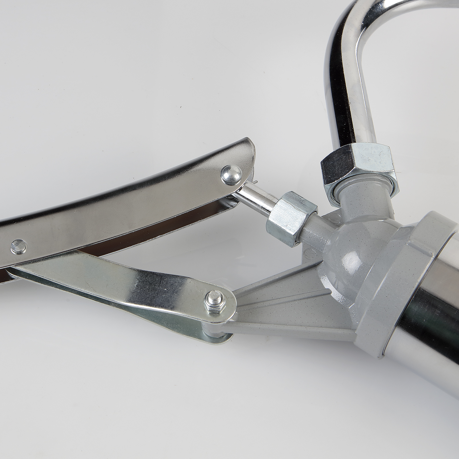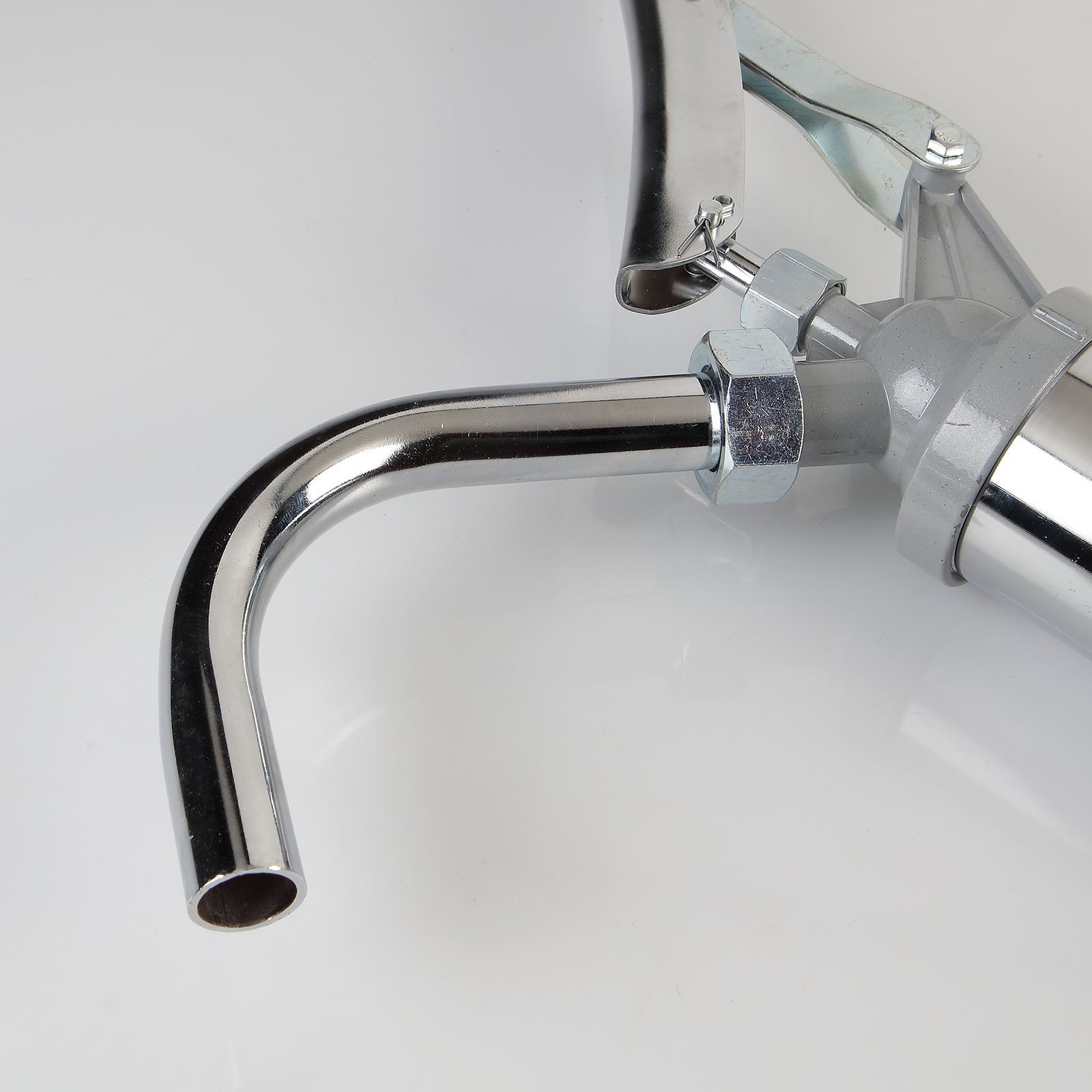 Fabricada em aço e alumínio, materiais que lhe conferem grande resistência. Possui um mecanismo de uso simples em que basta acionar a alavanca para que o líquido flua através do seu sistema.